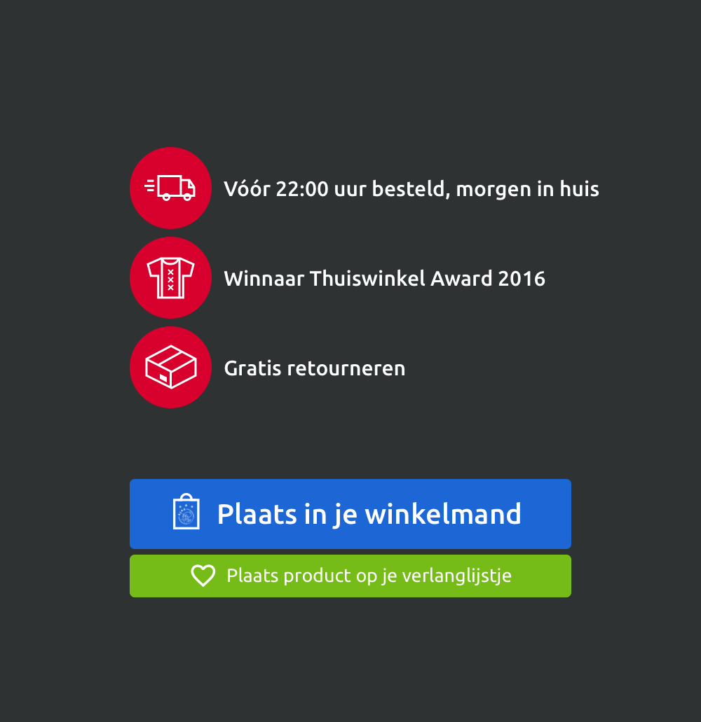 Duizenden bezoekers hebben we in een week onderworpen aan een A-B test om te meten welke kleur button betere conversie oplevert. De geijkte kleur groen heeft het afgelegd tegen de frisse, sportieve blauw die in de ontwerpen zijn gebruikt. Toch kon groen blijven, in een andere rol. Samen met het Ajax-rood én custom icons konden we krachtige call-to-action's maken.